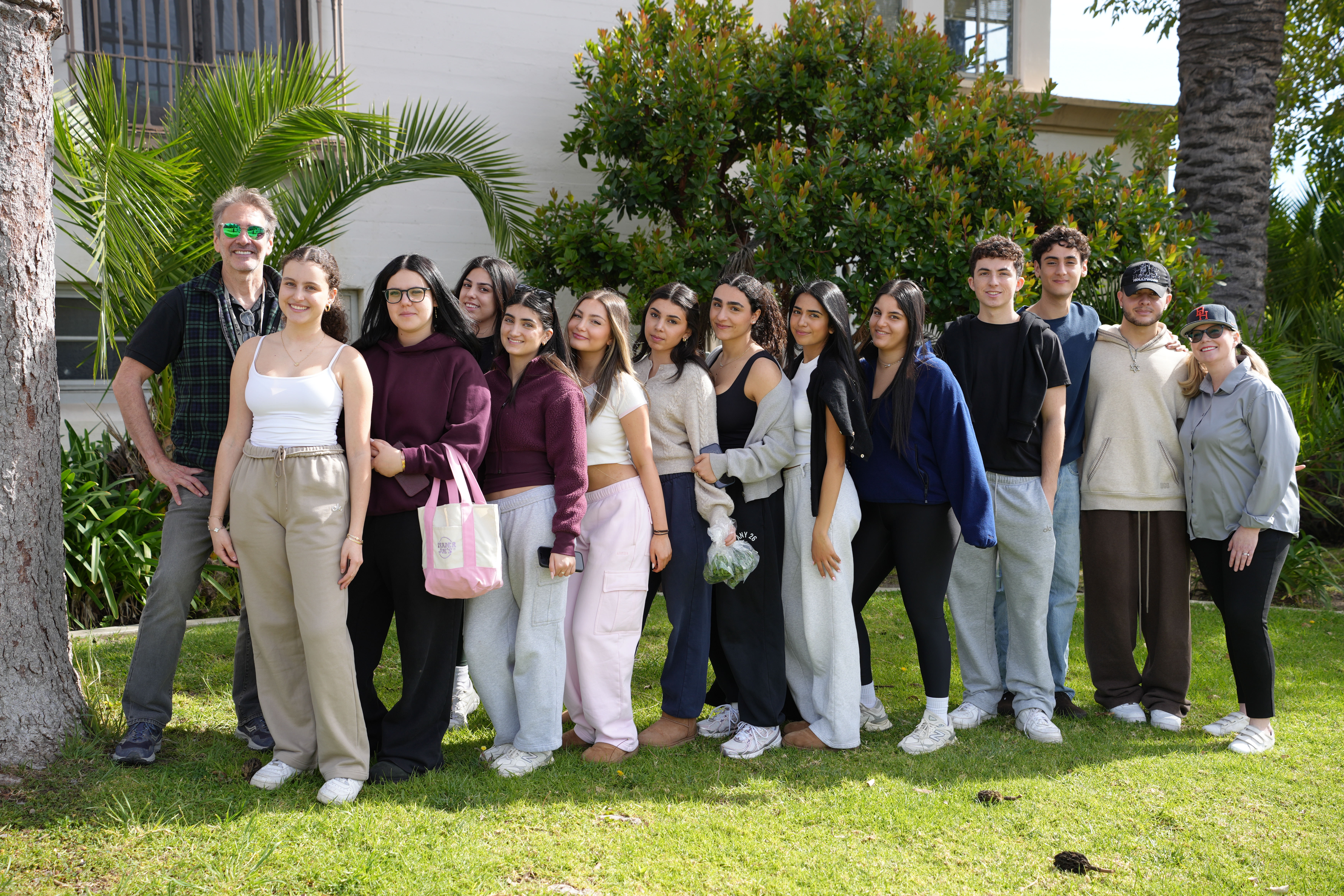Beverly Hills High School service learning students outside the Hawthorne Campus to plant seedlings at the City Greens Community Farm during a hands-on learning visit.